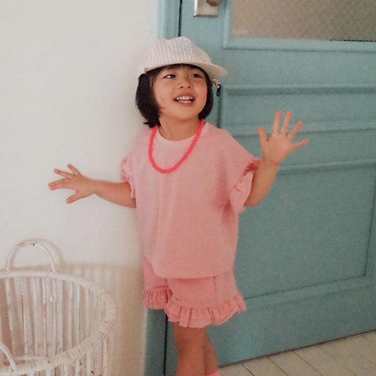 Mumu & Baba Days Frill T-shirt <Pink / Beige> Sizes 5–15